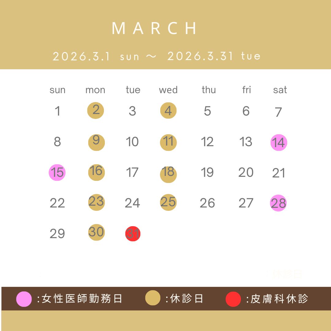 3月の診療日は以下の通りです✨