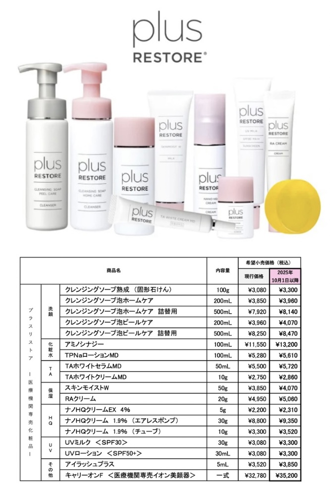 メーカーの仕入れ値の変更に伴い、2025年10月1日より値上げとなっております。